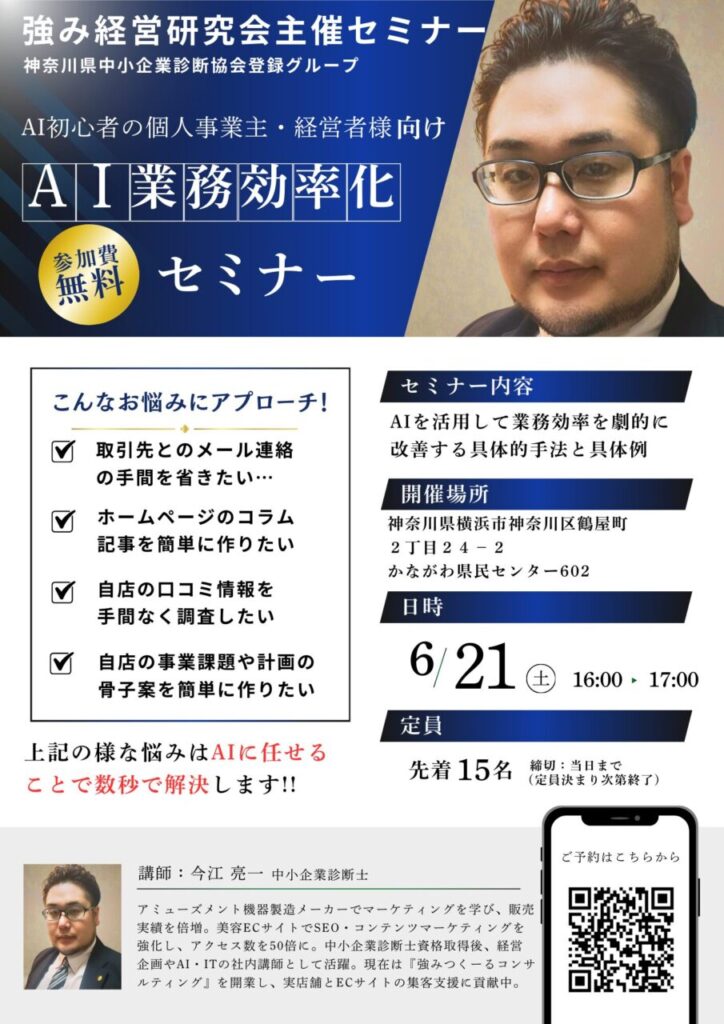 AI初心者の個人事業主・中小企業経営者向けに「AI業務効率化セミナー」を開催しました。
